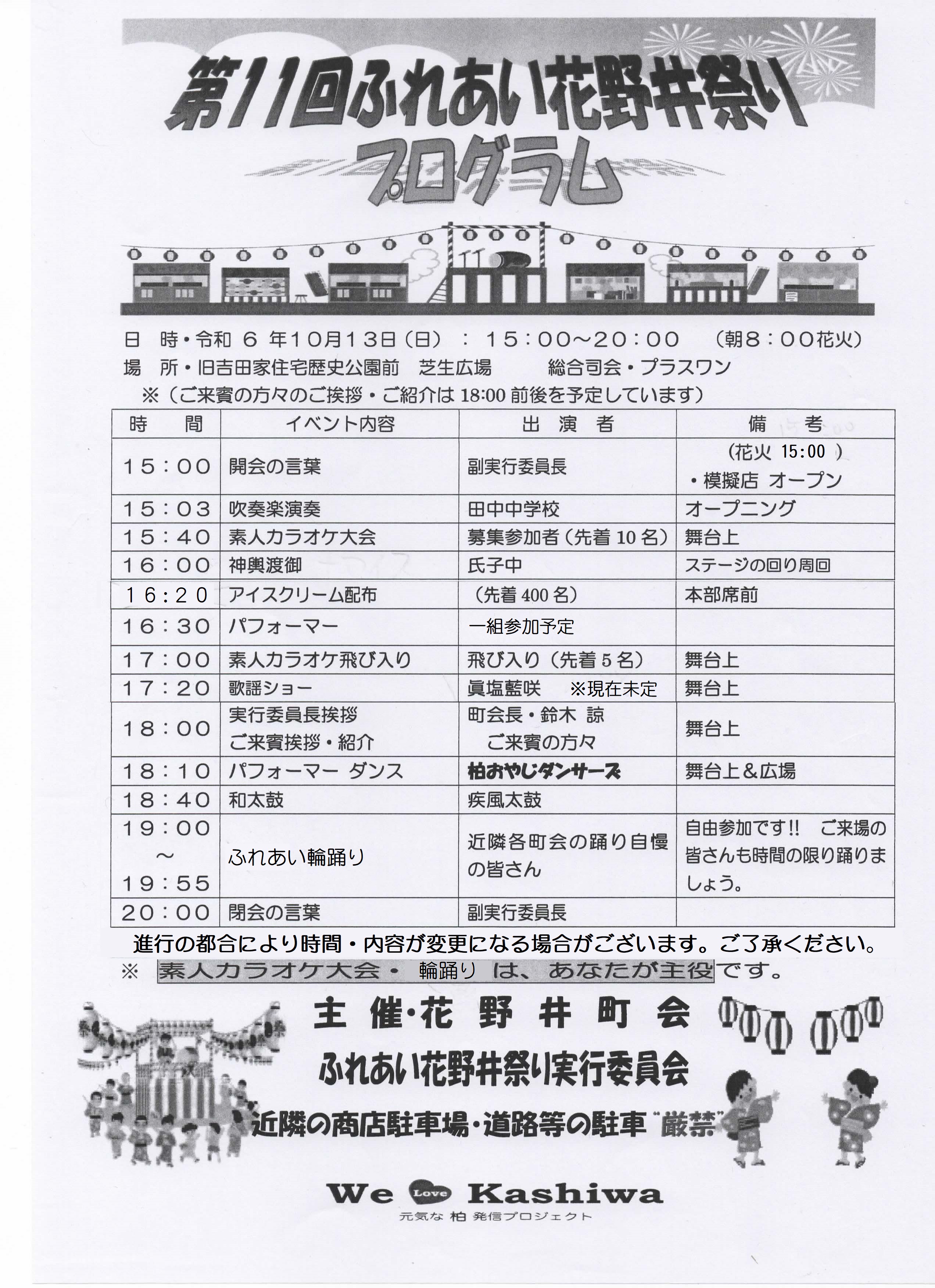 第11回ふれあい花野井祭りの詳細が決まりましたのでお知らせいたします。