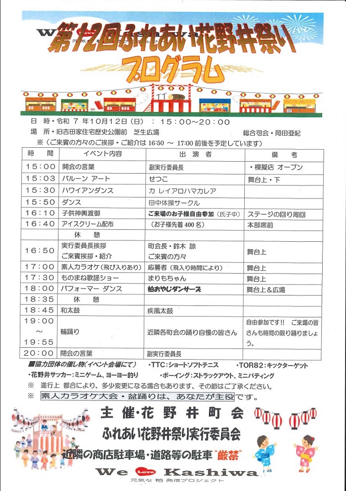 第12回ふれあい花野井祭り 開催のお知らせ