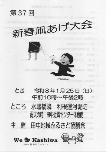 第37回 新春凧あげ大会 開催 が来る1月25日(日)に水堰橋隣 利根運河堤防 にて開催されます。